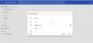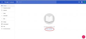 Когато изберете Contacts от менюто Gmail, ще се отвори нов прозорец Google Contacts, където лесно ще можете да добавите желаните от Вас имейл адреси към Вашия списък с Google контакти: